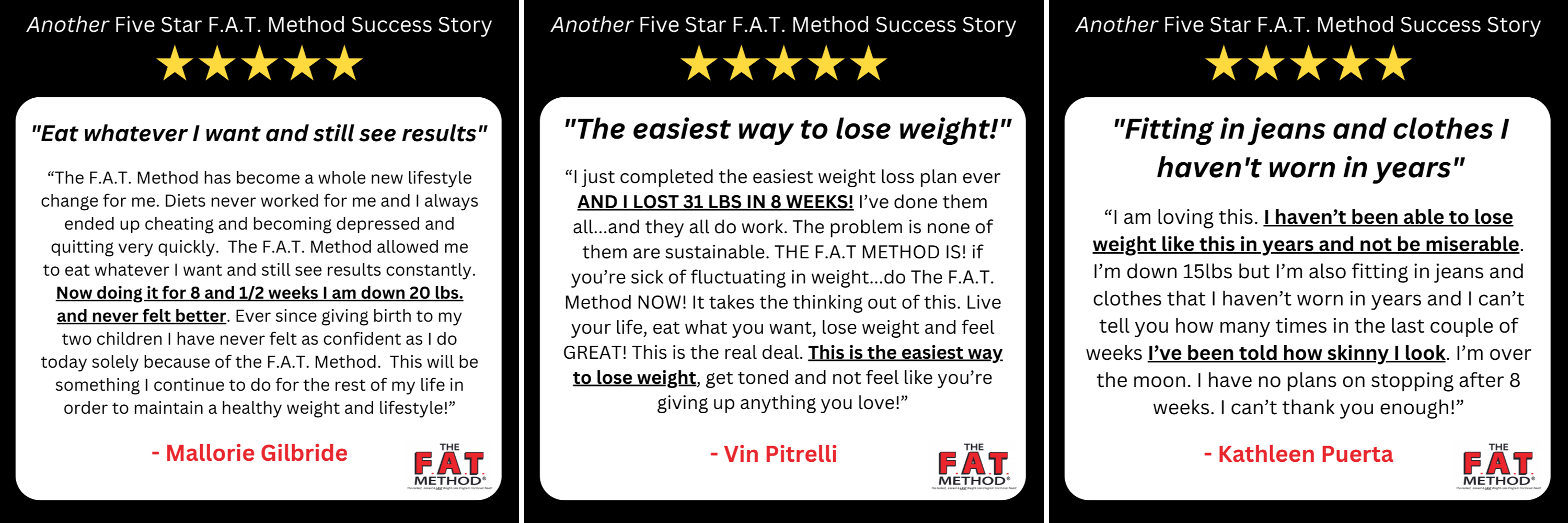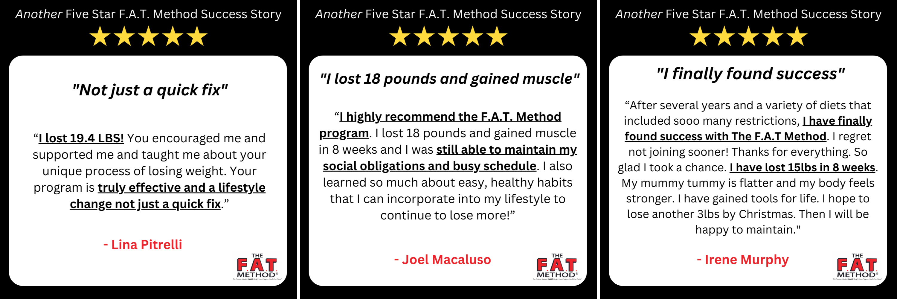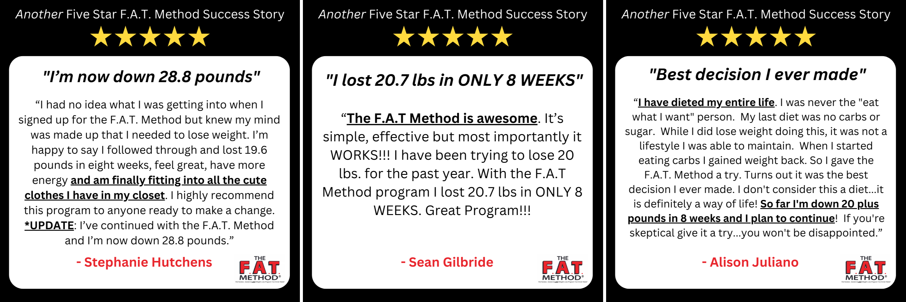 And no more Yo-Yo dieting because The F.A.T. Method is truly SUSTAINABLE.